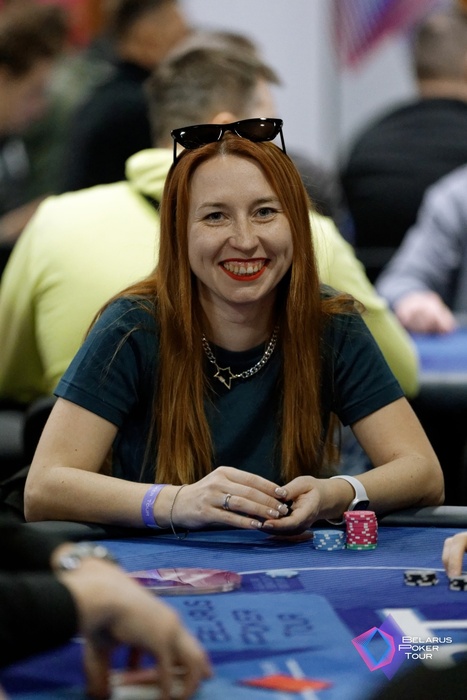 А за другим столом сразу два коротких стека дождались своего удвоения: Наиль Аберхаев выиграл с против Евгения Мелешкевича. Теперь Аберхаев имеет 620к. А Мария Яковлева с устояла против . Стек стал 270к