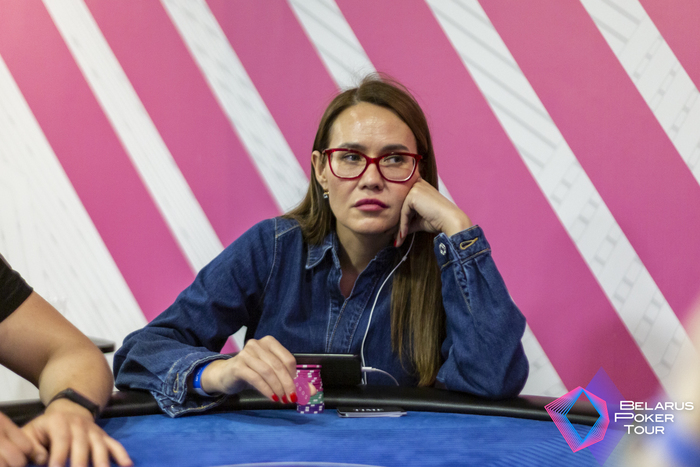 В открытие Геннадия Каликина Мария Яковлева поставила олл-ин 320к. На малом блайнде Виктория Бирюкова — свой олл-ин 1.1 млн.