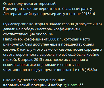 Через полгода опять пишет и соглашается работать на моих условиях, а у меня как раз в покере начало получаться. Ну не прям получаться приполучаться, а так, немного, примерно тот уровень зп, который был бы у меня при сотрудничестве с ним. Но я согласилась. И не вывезла. Через неделю извинилась, отказалась от работы и рассказала ему про покер. Пожелали друг другу удачи и пошли каждый своей дорогой. При этом у меня была уверенность в том, что, если дела пойдут наперекосяк, я всегда смогу к нему обратиться и выровнять финансовую ситуацию.
