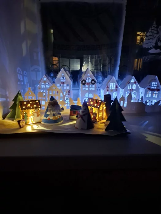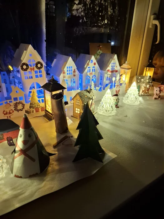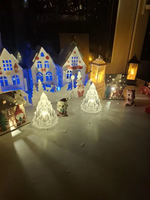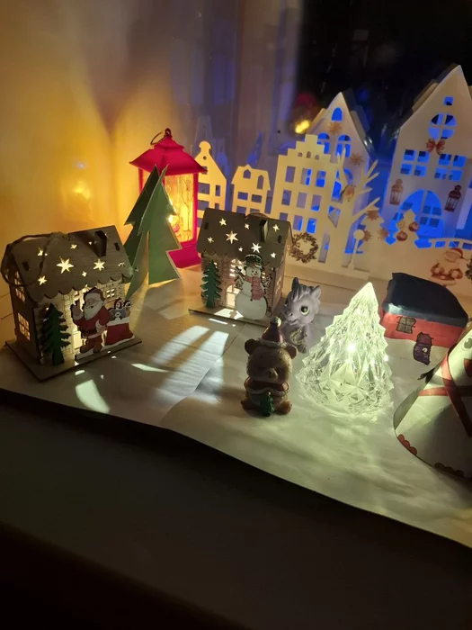 2. Сделали новогодний сказочный городок. В этом году я прям заморочилась новогодним декором для детской. В итоге получилось сначала такое