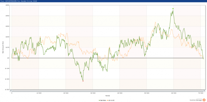 В июне никто из нас почти не катал (диплом+дота). Удалось набить небольшую дистанцию для сохранения статуса Сначала фифти, которые я первый раз пытался гриндить и не совсем еще освоился в игре <5бб. Катал 18 столов но не очень долгими сессиями, в итоге нищебродская дистанция, которую некоторые набивают за день