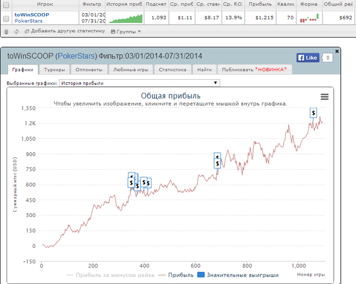 Нафармил сегодня 229 турниров. Не густо, но потихоньку втягиваюсь. В идеале для меня было бы в будний день играть 500 турников. Постараюсь в ближайшую неделю поработать над тайм-менеджментом. В теории можно найти довольно много времени для игры. Плюс постараюсь увеличить мультитейблинг до 20 столов, сейчас играю 11. На работе врядли так получится, а дома часик-другой такой игры даст хороший буст, тем более что поляна вечером слабее.