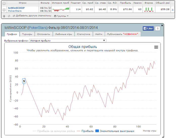 Не вижу проблемы, в ХМ ты увидишь свой перебор/недобор в фишках, на шарке можешь посмотреть общий результат за данный период времени. Так что прикинуть свой ЕВ профит дело на пару минут. С известным ЕВ профитом считается и ЕВ РОИ.