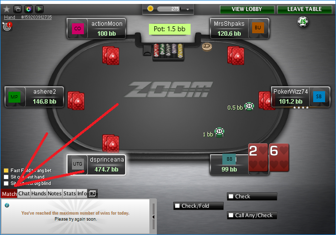 $0.05/$0.10Zoom No Limit Holdem