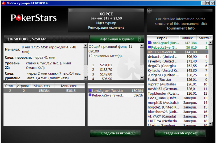 А так день вышел интересным: выйграл фрирол( путевку)..;9 место в турнире по холдему и топ-3 в лошадке.