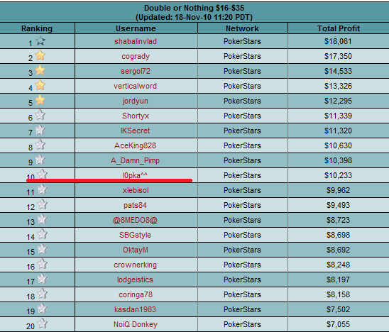 3. К концу года быть не ниже 10ого места в Leaderboards в Sharkscope по донам 20ый лимит