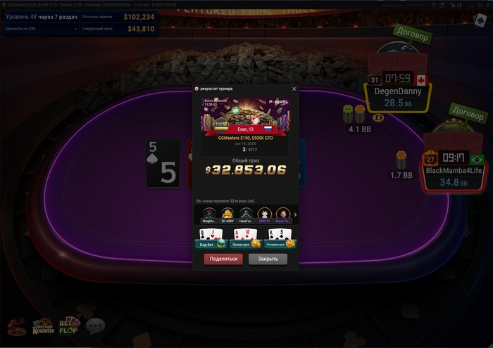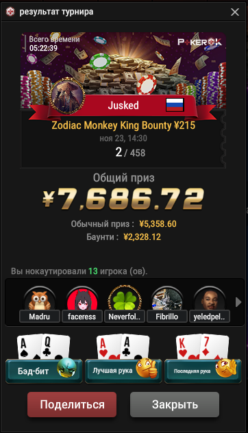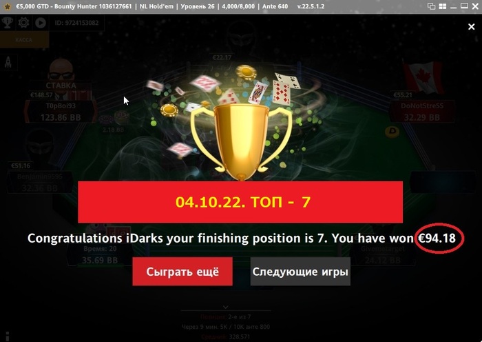 Да, предупреждение тем кто вдруг окажется со мной за одним столом и увидит что я зашёл в раздачу, настоятельно рекомендую выкинуть свои карманные "АА", потому что мой тренер Exan13 и вам ни чего не светит кроме потери денег....