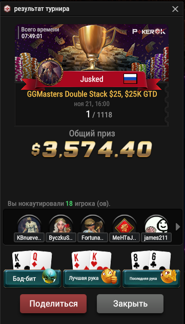 Играю abi 25 МТТ. Взял у Алексея курсы по префлопу и постфлопу, а также 20 часов тренировок. Сотрудничеством с Алексеем очень доволен. Мои инвестиции окупились через полгода.