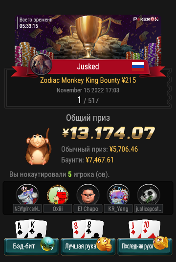 Провел с Алексеем всего 1 тренировку и по его совету приобрел курс по префлопу. Результат не заставил себя долго ждать. Понимание игры вышло на новый уровень, играть стало в разы легче, появилась уверенность в собственных силах. Раньше вообще катал не туда, как оказывается. Прошёл всего месяц после занятия и приобретения курса, а у меня профит за ноябрь перевалил за 6000$, когда обычно в месяц выходило 1000-1500$ от силы. Обязательно буду еще брать тренировки.