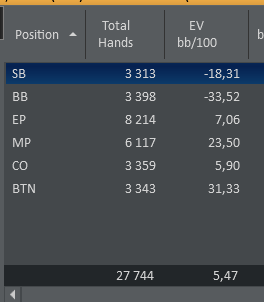 Сайзинг связан с тем, что оппонент телефонного типа с фолдом на сбет флопа близким к нулю (правда ситуаций было на 117рук не много, но тенденция есть). И, соответственно, план был ставить много флоп, мало терн без крести, агрессия общая 4 у него.