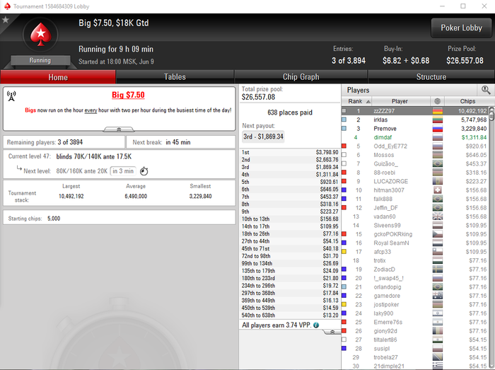 П.С. посмотрел раздачу внимательней и увидел ужасный сайзинг на флопе- конечно надо ставить 20-35% пота, надо создать путь по которому наш оппонент отдаст нам наибольшее количество фишек