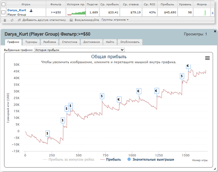 Ну, и стоит понимать, что на лимитах выше сильнее оппы, а в дипах любителей практически не остается. Да и лучше ли играть аби 50 с рои 15% чем аби 25 с рои 30%? По деньгам все тоже самое, а стрики дольше и дороже.