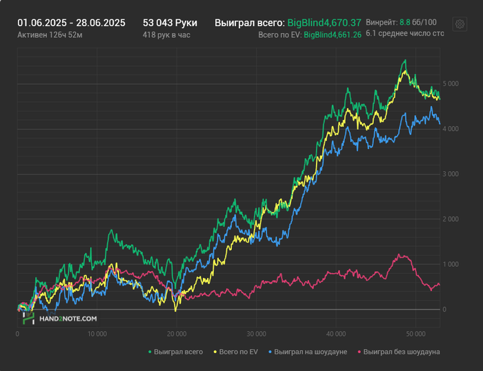 Затем винрейт пошел вверх, но усталось дала о себе знать, в последние дни просто уже тошнит от этого покера, еще и ран такой, что ничего не получается, сегодня уже просто надеялась, чтобы столы быстрее закрылись, и я пошла отдыхать.