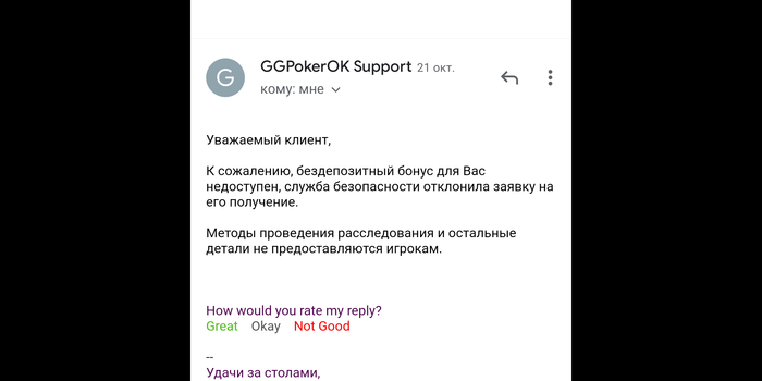 Если баланс не пополнился в течение 30 минут, напишите в саппорт и предоставьте чек (где будет видна сумма, время и получатель). Cвязаться со службой поддержки ПокерОК можно: