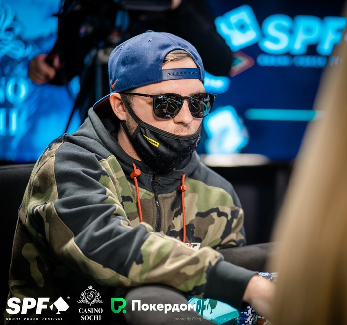 Ахметхан Хаваяшхов открыл 450,000 с баттона, Максим Абоимов защитил большой блайнд. Флоп последний сыграл через чек-рейз с 300,000 до 600,000. Тёрн был прочекан. На ривере Максим зажал педаль газа, поставив олл-ин 1,5М в блеф, но у Ахметхана был на руках натс.