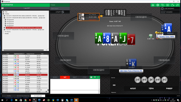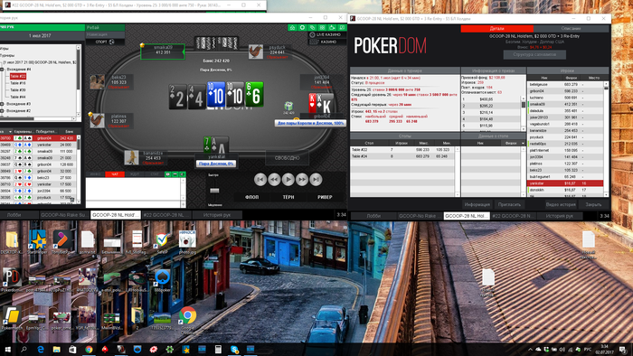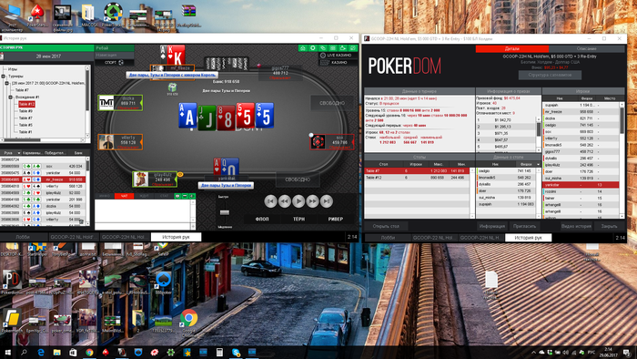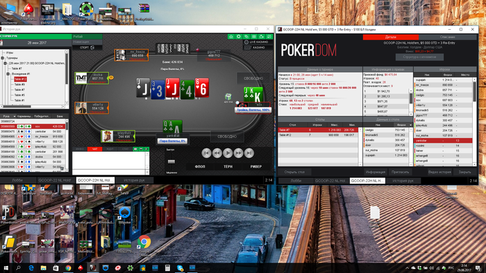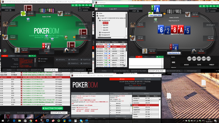 Однако сдали кулер и вылетел, сделал реэнтри, дошел до топ5(в призах 4), проиграл коротышу с АК в AQ, потом выбил другого короткого и в 3 максе проиграл 2 такие залупы: