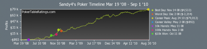 Vka-vka @ 3.9.2010, 2:40 завязывай с ним играть. Это увлекательно, но слишком дорого. Разве нельзя признать, что кто-то в данный момент играет лучше тебя? Я давно признал. Лучше нанять хорошего тренера, (близкого по стилю) заплатив в разы меньше чем $4,840.65, которые по версии ПТР ты залил этому оппу.