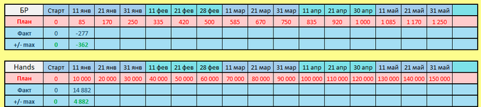 BAHAKC, Да, у меня в целом есть возможность отказаться от кешаутов, поэтому буду смотреть на результаты месяца и количество БИ играемого лимита. Для себя пока определил, что на NL50 комфортным будет 50БИ для игры и, при удачном стечении обстоятельств, БР может нарасти достаточно быстро, а вот вменяемого количество рук для понимания как я играю данный лимит может и не успеть. Вот и появится возможность немного порадовать себя.