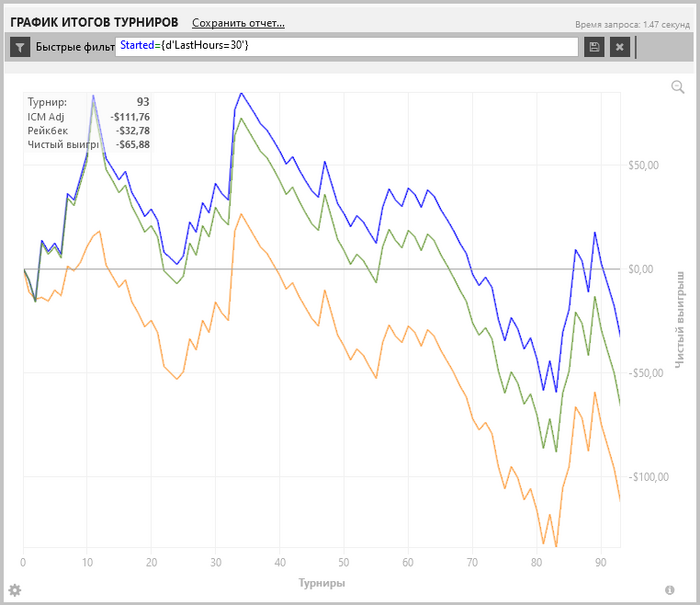 📊 Турниров: +93 / Профит: -67$ / Банкролл: -50$ (-0,5%)