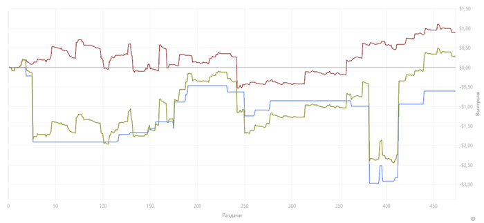 Или так: дошёл до ривера, получил потбет или больше. Ну что то есть у оппа? Скинул - забыл, решил коллировать - примерно 70 на 30 что-то у него было помощнее моего. Но блефуют тоже, гады.