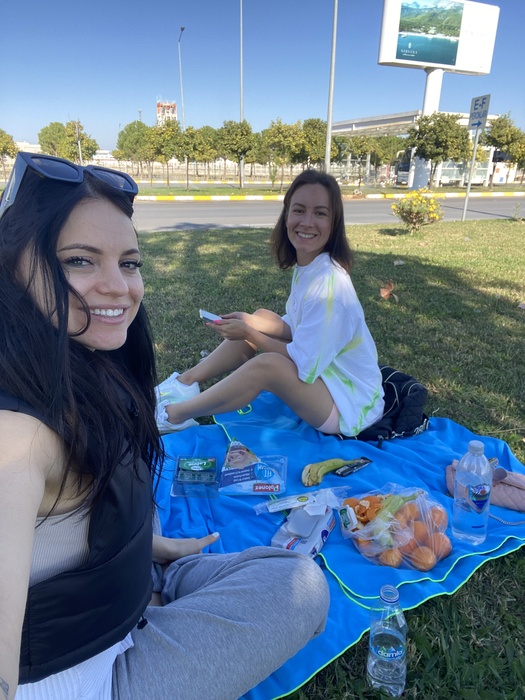 Отмечаю девичник на пересадке в Анталии со своей близкой подругой. Прямо на газоне у терминала) За неделю ДО.