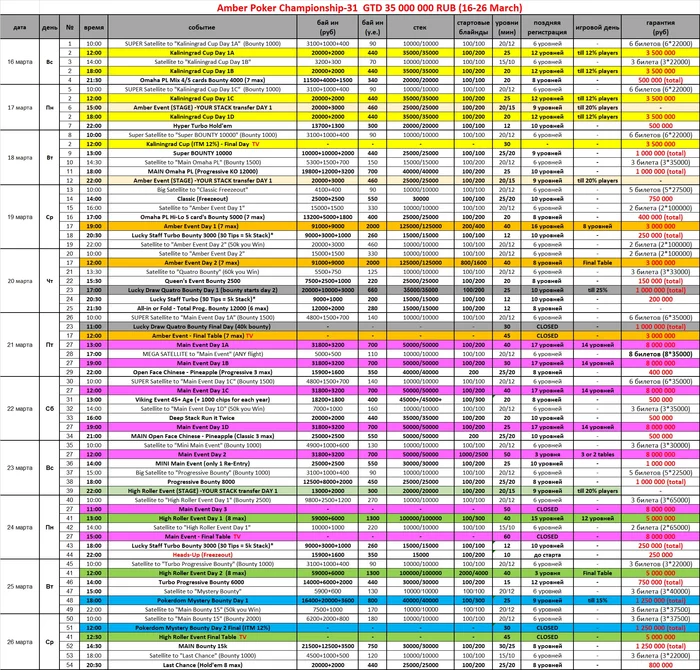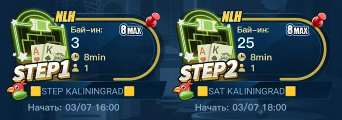 - 16:00 МСК (15:00 по Калининграду) степ по 400р. к финальному сателлиту Main Event.