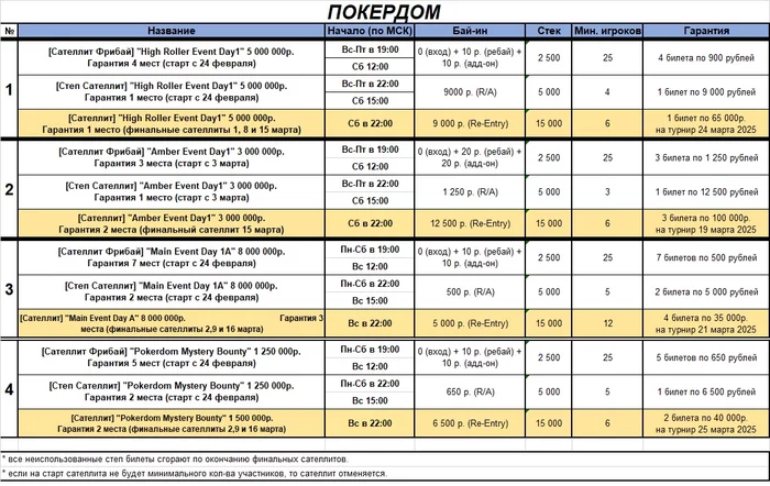 - Мини Мейн изменили на пробный формат - турнир с 1 ре-ентри (повторный вход).