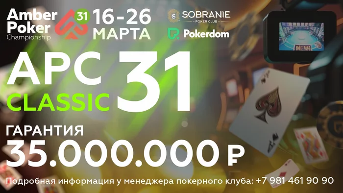 - 35.000р - билет на участие в главном событии APC-31 (Main Event Day 1A).