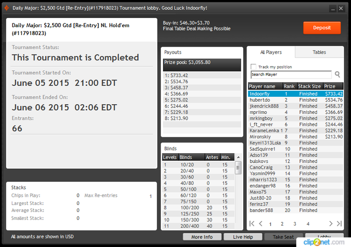 Party, $9 Buy-in (1,500/3,000 blinds, 300 ante) No Limit Hold'em Tournament, 6 Players