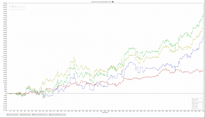 Вот графики за всё время в Мердже. Дистанции пока нет, конечно. Играл пока только нл400, когда набью больше банкролл на сайте, возможно буду миксовать с нл600, хотя я не очень люблю смешивать лимиты.
