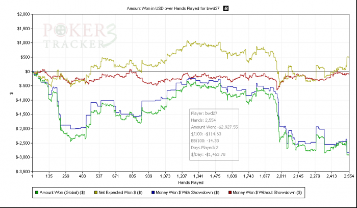 Я уже не говорю о том, что в префлоп битвах против агрорегов ни разу не удалось выставиться нормально, всегда смотрел в топ диапазона. Как много бы я отдал, чтобы не было таких неизбежных заливов периодически, но как не старайся, это часть холдема и я всё же это отчётливо понимаю...Сеты убивались трижды, но это собственно в ЕВ отразилось.