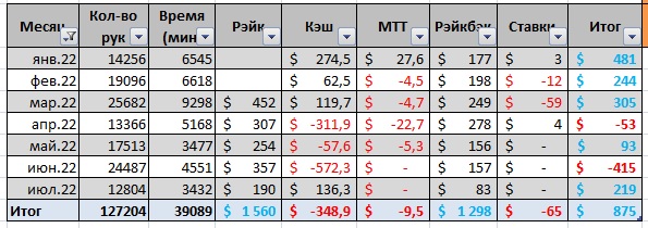 Июль: 219$. (Рэйк: 190$. Рэйкбэк: +83$)