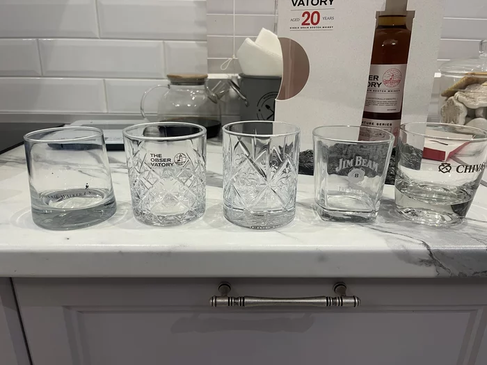 зы кстати по стаканам, из предложенных мне только Дюарс нравится. Чивас, ДжимБим и Вокер ну какие-то дешманские решения(ДжимБим вообще какой-то рофл, чистые стенки, тонкое дно...) А Обсерватори смотрится куда ни шло, но основания точно не хватает... ИМХО... мне прям грани на бокале это что-то необходимое