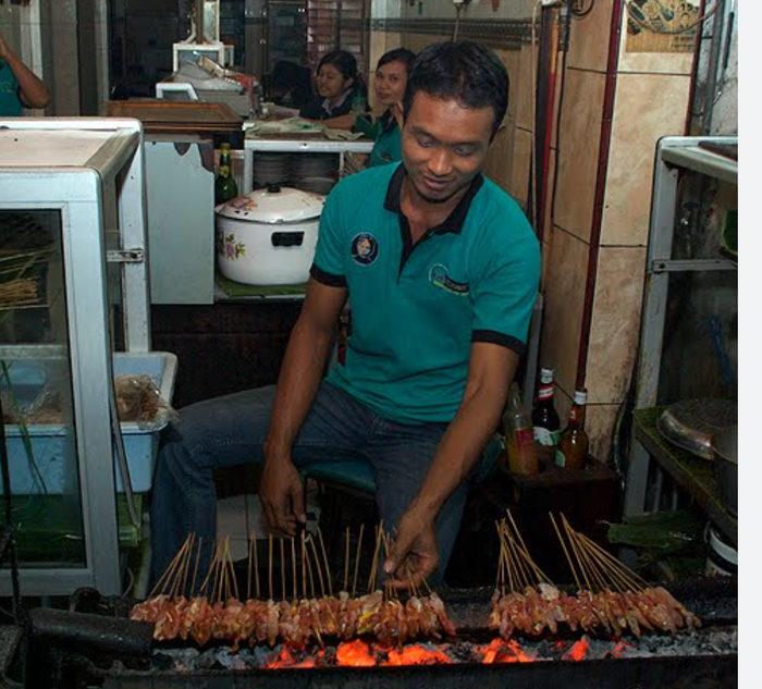 Много у них жарят sate прям на улицах - как наши шашлычки, из козы (жесткое) и курицы. На Бали есть забавное sate lilin на лемонграссе
