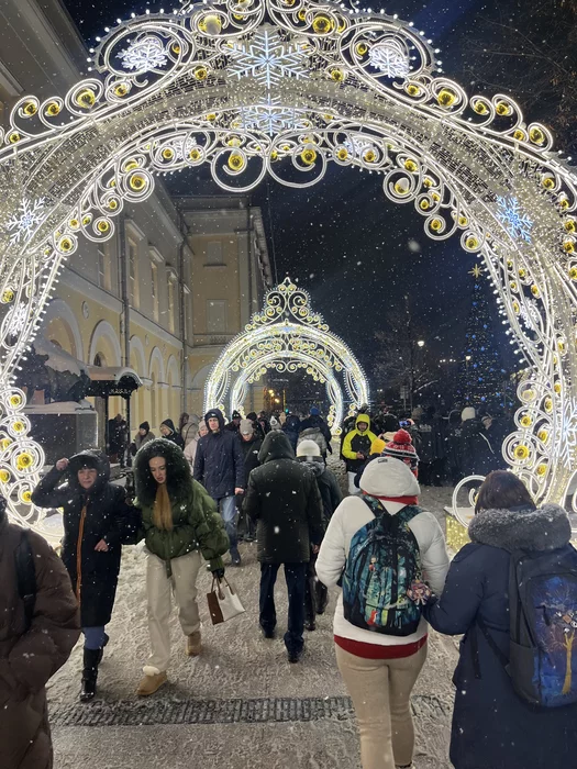 Народу очень много, идут гулять на Красную площадь и с нее.