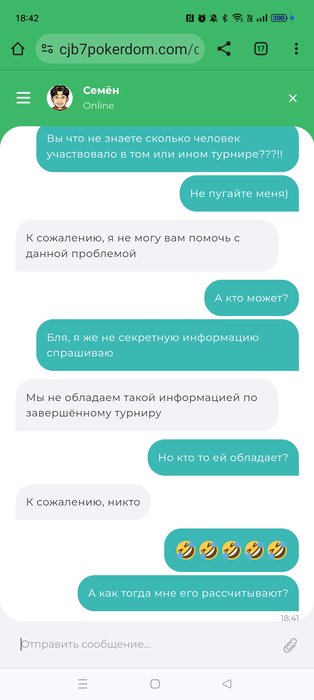 "Я зарегистрировался в турнир за 150р при обнулении стека сделал докупку за 150р и при следующем обнуление снова жму докупиться за 150р и тут происходит зависания серверов покердома. При этом деньги со счета за последний ребай не списываются. Так я просидел в ожидания возобновления игры полтора часа и пошел спать. На утро обнаружил, что за последний ребай деньги все таки списались... Написал на почту в службу поддержки, там стандартно отписались: что будут рассчитывать по icm , то есть по фишкам. Ну а раз турниры все возобновились спустя 3 часа и потом через 15 минут отменились шансов у меня на компенсацию видимо нет. Да сумма не большая, но хочется справедливого решения по возврату средств за недоигранный турнир не по своей вине. ник ....."