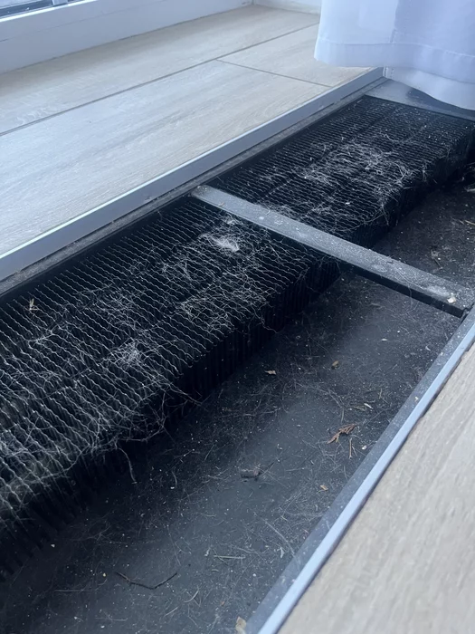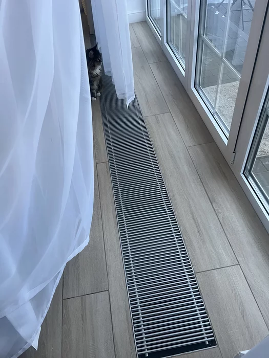 Внутри напольные радиаторы выглядят вот так. Увы, они в кошачьей шерсти. Такова плата за содержание трех кошек в доме. Время от времени мы чистим радиаторы, но как видите , надо бы мне чистить их почаще. В основном чистит их жена, за что ей огромное спасибо, обязательно перед отопительным сезоном, ну а в процессе сезона - как руки доходят. Нужно мне подключаться, похоже. Хотя эта шерсть никуда не летит, она внутри так и сидит на радиаторе, ведь решетка радиатора, по которой ходят, не пропускает шерсть