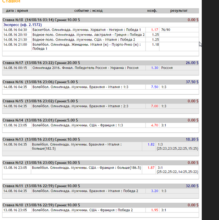 теперь про спорт марафон, мискликнул и поставил дважды на одно событие конечно же оно проиграло+подвела пляжка, так бы совсем норм было, а пока чуть больше 100$ плюса