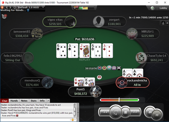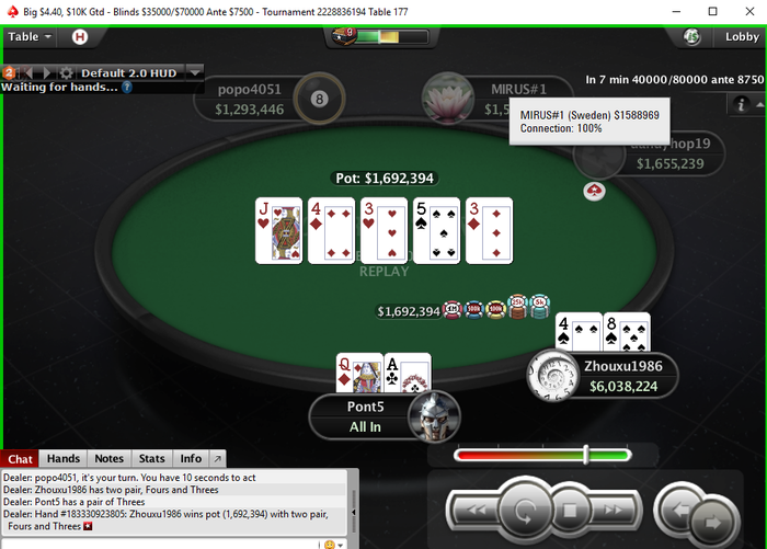 Последняя сессия месяца выдалась вот такая, взял топ 4 и топ 2, немного расстроился, как минимум одно первое место брать обязан был, но QQ<AA против отбитого фиша не занеслось