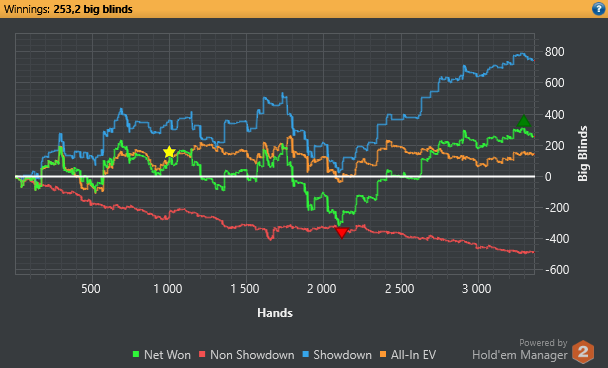 Итоги 2019 года. Он был менее насыщен офлайном, чем 2018, зато более результативным в части касающейся EV). Удалось оформить пару-тройку ТОП-1 в не таких уж и простых (на моём АБИ) дипранах. Перечислять что было за год смысла нет, всё есть выше по тексту. Цели - работа над игрой в солверах, "копаем" постфлоп, закрепляемся на АБИ 10-11. Подаём 3-ю заявку в FF:blink:. Всех с Новым Годом!