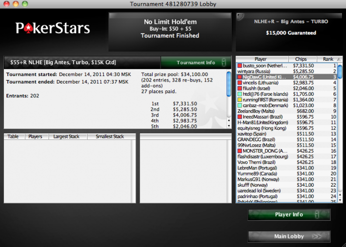 Требования - дистанция от 300 МТТ за 2011 год с аби более $10 и ROI от +20%. Либо хороший профит в кэше.