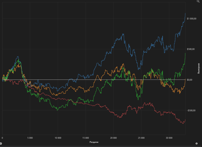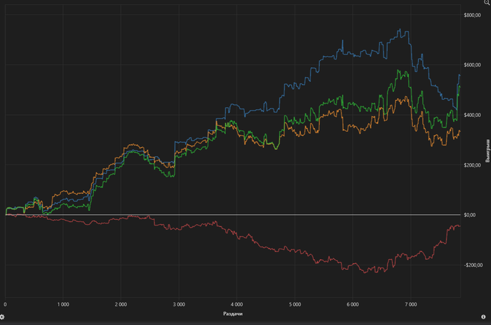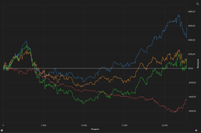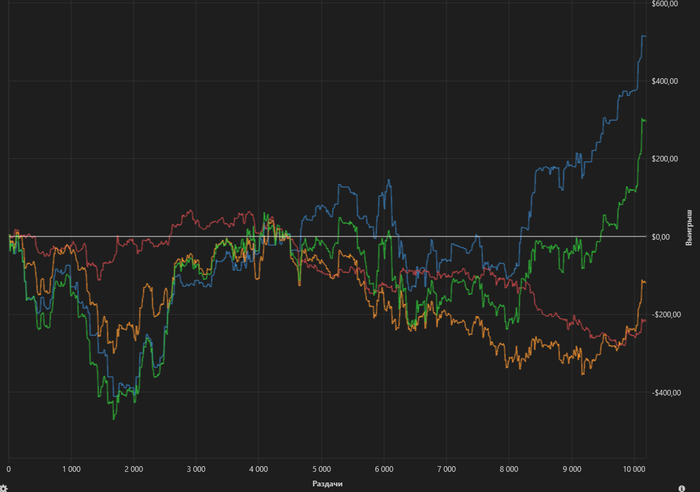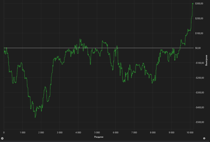 Концовка чуть было не смазалась, но повезло. Кстати, закончил по плану, а не потому что резко отыгрался. Галочки на закрытие столов уже стояли. Пришлось даже лишку захватить, чтобы предупреждение не прилетело.