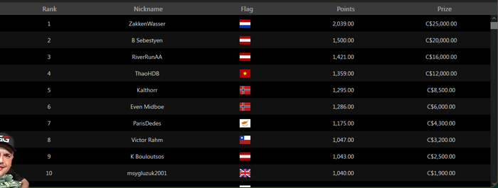 Увы, как и ожидалось, ГГ порезал все ЛБ, что бы устроить развлечение для богатых. Вся десятка это хай-лимиты холдема и омахи. Только Калтор погибает, играя ниже и 15 разных ЛБ, и въетнамец на 5 лимитах шортдека потеет.