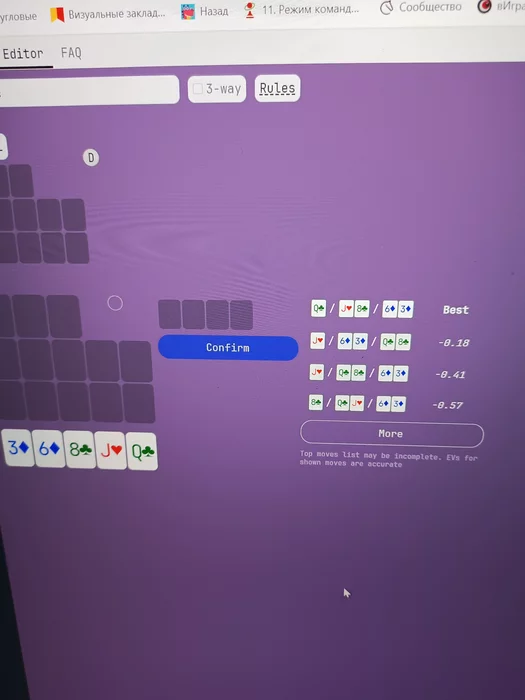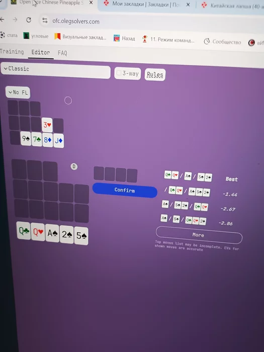 Сегодня вместо утренней-дневной катки руки дошли до разбора раздач. Очень полезная вещь. Особенно когда как я в каждом ходе сомневаюсь)))