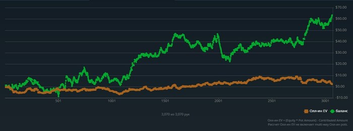 Тут о сливе банкрола говорить не приходится, как выяснилось на практике, но переживания такие к 500й раздаче были. Последние 250 раздач сыграл сегодня, затягивает эта лотерея)