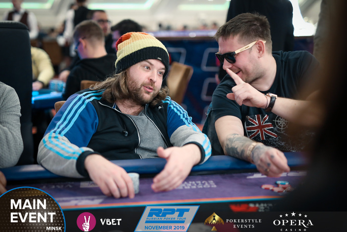 Кстати, за одним столом сидят два крупных стека далеко за 1КК. Один у Александра Береснева (слева) и у Александра Лаштопы (справа)