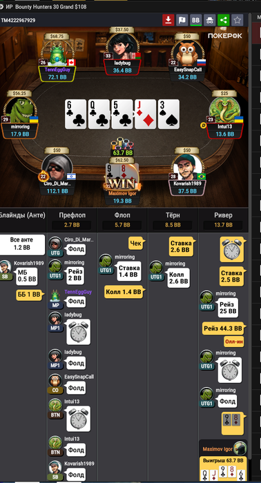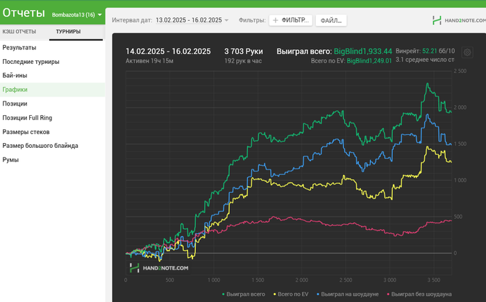 Второе: у меня прям очень мало времени на катушку остается, катаю по 14-15 столов не АБС покер, по ев окей, но думаю в таком темпе это далеко не окей.