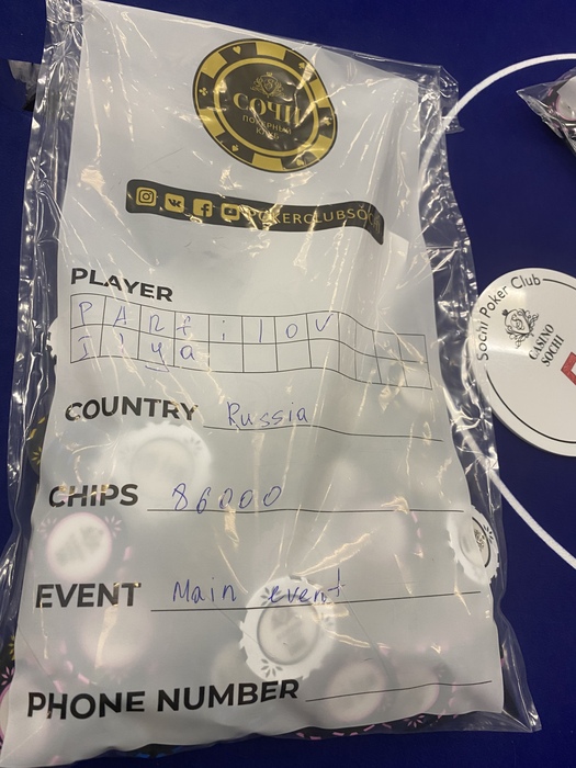 Main event наигрались, 1 вход сделал, 86к закончили день, 30к стартовый был, 2 день будет 25 числа