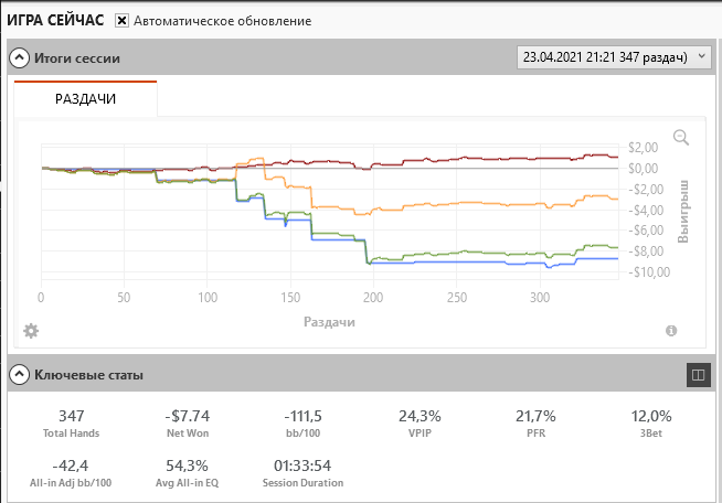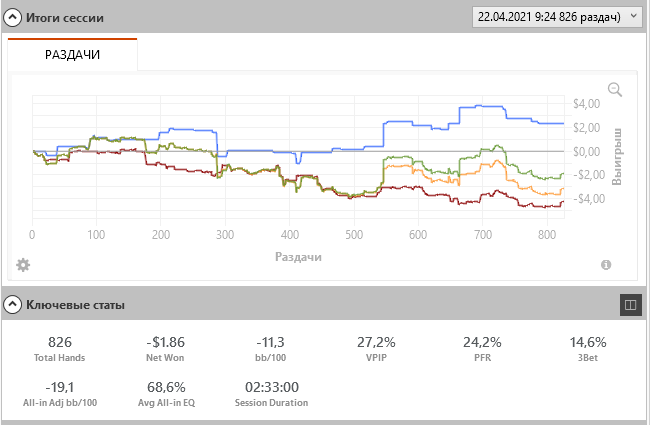 Короче "попал отжал" наш девиз, за два месяца с такой стратой я дошел до нл10. Сейчас статы 23/19/8, на лимитах 2-5 явно был тайтовее.