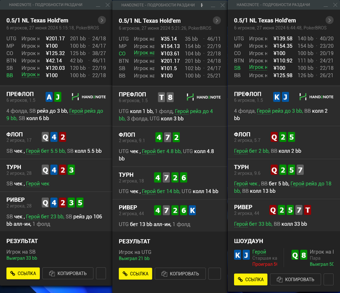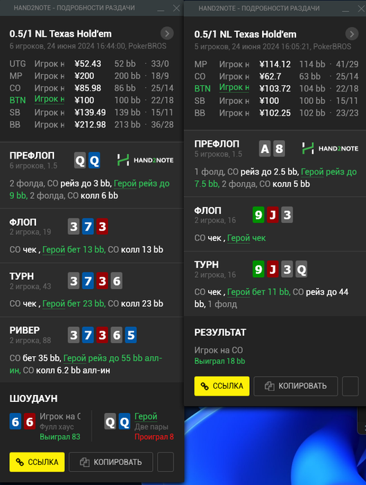 В первой раздаче, кстати, колл флопа разве тоже не довольно серьёзная ошибка? На 2/3 тянемся даже без бекдор фд. Хотя чаще всего можно тупо всё ронять кроме тп и лучших дро.